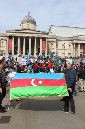 A group of over 400 Azerbaijanis, supporters of Azerbaijan, members of the Turkish diaspora and Londoners believing in international law participated in a vocal protest in the heart of London, co-ordinated by The European Azerbaijan Society (TEAS). This began in Trafalgar Square – a focal point for Londoners and tourists.