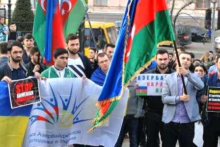 Azerbaijani diaspora has organized a protest action in front of the Armenian embassy in Ukraine in order to expose Yerevan's aggressive policy.