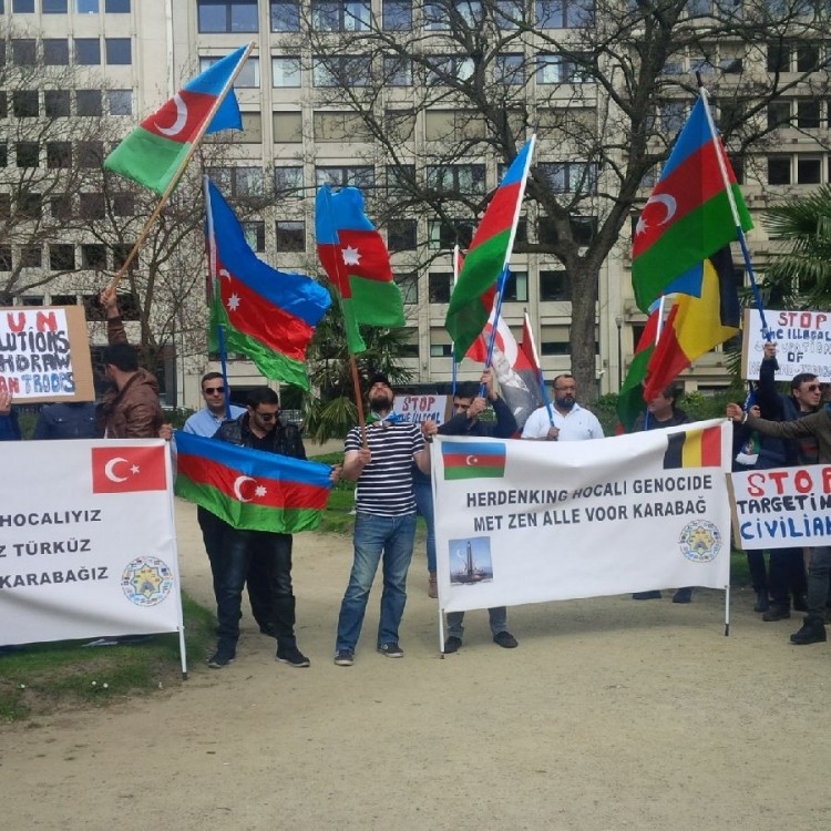 The protest was organised by the Azerbaijani–Belgian Friendship Society and World Azerbaijanis Congress, amongst other groups, and supported by the Benelux office of The European Azerbaijan Society (TEAS).