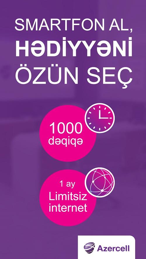 Country’s mobile telecom market leader Azercell Telecom is pleased to launch a campaign for customers who would like to buy a new mobile phone at favorable terms. Thus, any customer purchasing a mobile phone at Exclusive shops of Azercell will get, at their own discretion, free unlimited internet pack or 1000 on-net minutes for the first month as a bonus.