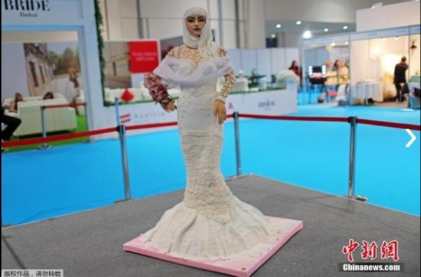 Wingham's latest creation, the realistic-looking bride complete with hijab, engagement ring, lace and floral detail on the dress, was first seen on display at Bride Show Dubai on 7 February.