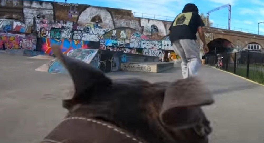 This footage was captured by Snoopy, and uploaded by his owner, Rob Mathieson. "Snoopy goes everywhere with me, so when I go skating he comes along too," says Rob. "He’s always liked chasing and running along next to skateboards and he definitely enjoys it," he adds.