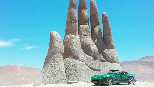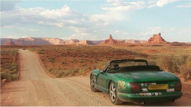 From Pyramiden, Mr Coombs drove his green 20-year-old TVR Chimaera, called Kermit, across Europe to Southampton from where the car was shipped to New York in August.