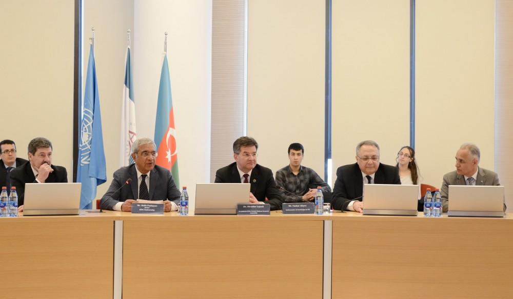 The event was attended by ADA University Rector Hafiz Pashayev, Permanent Representative of Azerbaijan to the United Nations Yashar Aliyev, UN Resident Coordinator Ghulam Isaczai, President of the 72nd Session of the UN General Assembly Miroslav Lajcak, as well as students and teachers of ADA University.