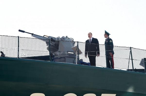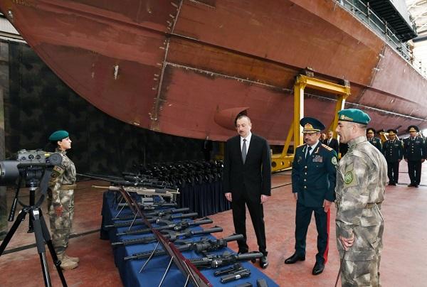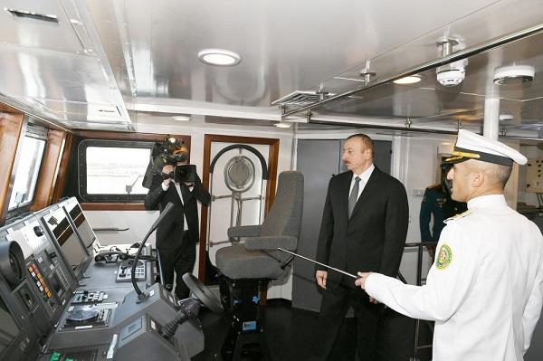 President of the Republic of Azerbaijan Ilham Aliyev has viewed a newly-constructed “Tufan” border guard ship at the Shipyard and Repair Center of the Coast Guard of the State Border Service on April 30.