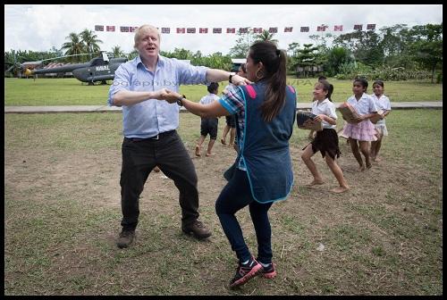 When the school children started dancing to the drumbeat, Johnson joined in the celebration. Although Peru’s exotic weather left him flushed and sweaty, the foreign secretary did demonstrate some awkward dance moves.