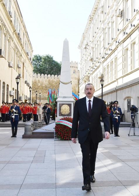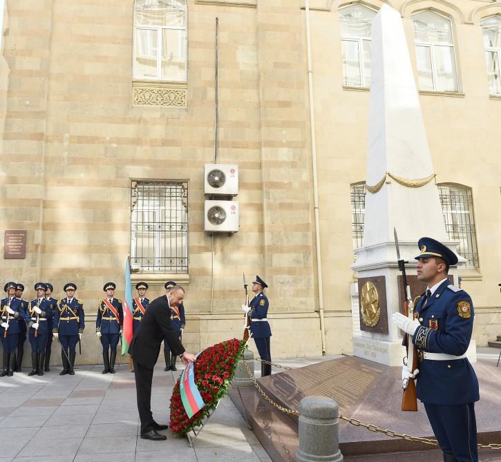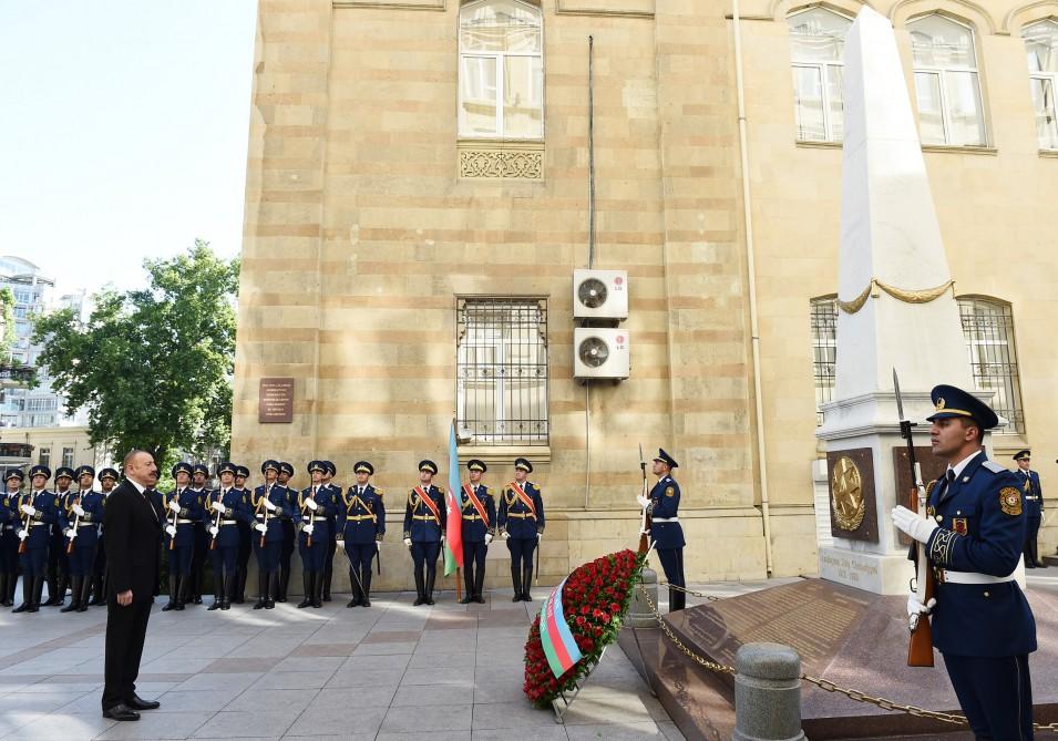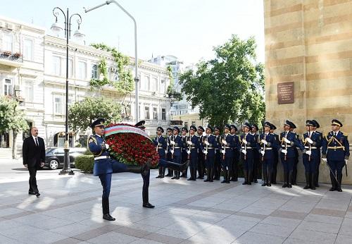President of Azerbaijan Ilham Aliyev has today visited the memorial in honor of the Azerbaijan Democratic Republic on the Istiglaliyyat street in Baku.