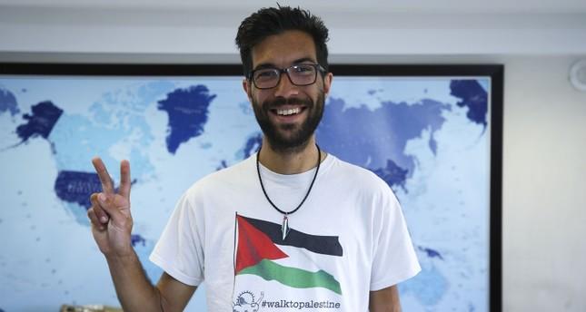 The 25-year-old began his walk to Palestine from Sweden nearly a year ago to raise awareness about human rights abuse in the occupied territory.