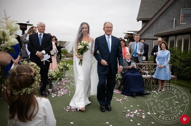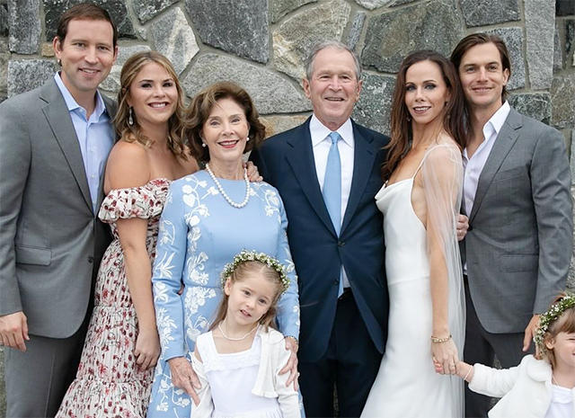 After Barbara’s father walked her down the aisle, the bride and groom exchanged vows in front of their immediate family, including former President Bush, 72, Mrs. Bush, 71, and Barbara’s grandfather, former President George H.W. Bush, 94. Barbara’s twin sister, Jenna Bush Hager, served as matron of honor, and her daughters, Margaret, 5, and Poppy, 3, were flower girls along with Coyne’s niece, Emma, 5. Poppy did double duty at the ceremony, also serving as the ring bearer.