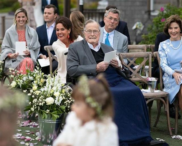 Only 20 family members witnessed the simple yet romantic ceremony, which was held at the Bush family compound in Kennebunkport, Maine, in the backyard overlooking the ocean.