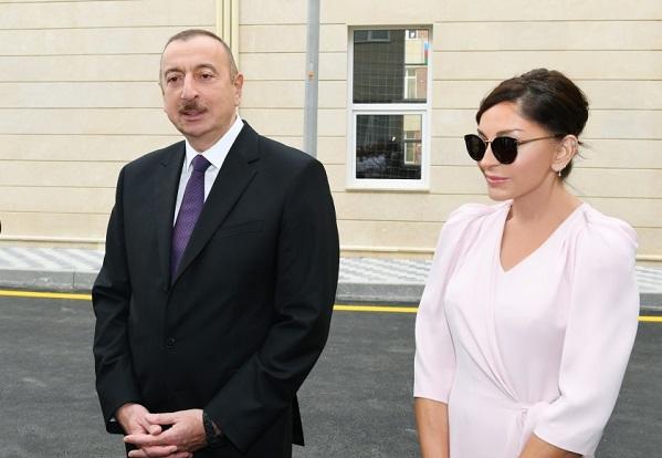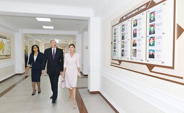 President Ilham Aliyev and First Lady Mehriban Aliyeva viewed conditions created in the classrooms of the new educational complex, including in the gym, military room, eco room, computer room, chemistry laboratory, and in the canteen, talked to the teachers and students and wished them success in the new academic year.