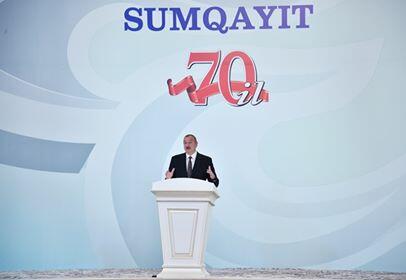 President of Azerbaijan Ilham Aliyev attended an event dedicated to the 70th anniversary of the city at the Sumgait State Drama Theater.