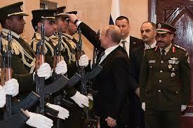 Russian President Vladimir Putin during a visit to the Palestinian city of Bethlehem raised his guard's cap when he went through the red carpet.