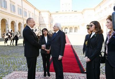 Axar.az informs that, a ceremonial guard of honor was arranged for the Azerbaijani President at the Quirinale Palace in Rome.