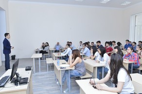 Presentation encompassed such issues as summer camp organized by Schlumberger based on weekly intensive programme, selection phases, admittance terms including activities of the company, the services Schlumberger offers in the petroleum field of the Caspian region and other activities. The presentation proceeded with questions and answers session. Then the first selection phase to recruit the students willing to join summer camp started. The students who successfully pass the further phase will gain the right to join summer camp.