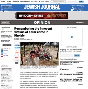 The Jewish Journal published on Feb. 19, 2016 an article by Azerbaijan’s Consul General in Los Angeles Nasimi Aghayev concerning the Khojaly massacre, which was committed in Feb.