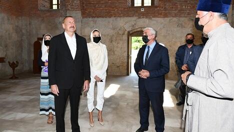 President of the Republic of Azerbaijan Ilham Aliyev, First Lady Mehriban Aliyeva and their daughter Leyla Aliyeva have visited the Albanian Church of the Blessed Virgin Mary located in Nij settlement of Gabala district.