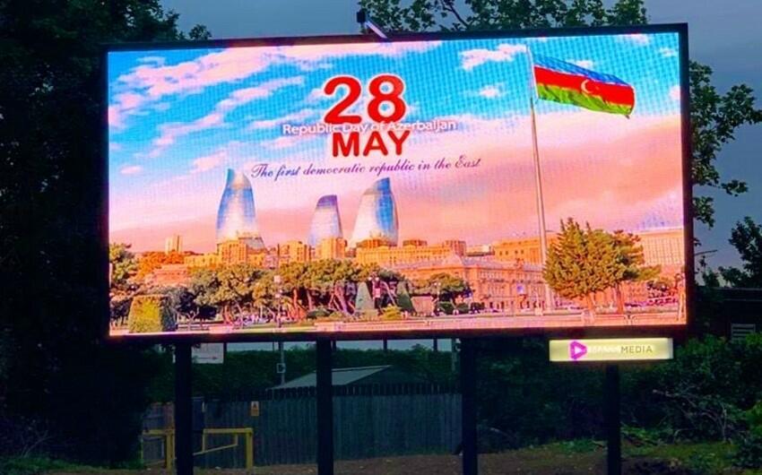 With the support of the State Committee for Work with the Diaspora, jointly organized by the Natavan Group in the United Kingdom and the Association of British Azerbaijanis, informational billboards dedicated to May 28 - Republic Day were placed in London, England.