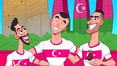 Famous cartoonist Omar Momani drew a picture of the Turkish national team's matches in Group A of Euro 2020 in Baku.