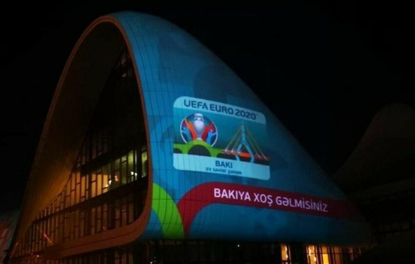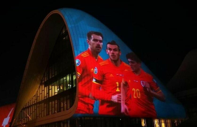 Axar.az reports that in the evening of June 12, images of the participants of the Euro 2020 Group A matches at the Baku Olympic Stadium (BOS) were shown through a light projection on the Heydar Aliyev Center.
