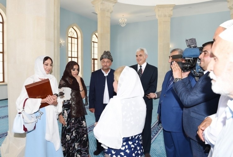 Akhund of the complex welcomed first lady Mehriban Aliyeva on behalf of the residents, and thanked her for renovation and reconstruction work done in Khazar district. He expressed gratitude to President Ilham Aliyev and first lady Mehriban Aliyeva for preserving religious and moral values in the country.