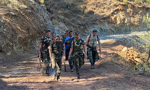 Members of the first group of firefighters of the Ministry of Emergency Situations (MES) sent to the brotherly country on the instructions of the President of the Republic of Azerbaijan to extinguish and prevent forest fires in Turkey are fighting a fire at a crisis point 11 kilometers from Marmaris, Mugla province.