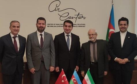 Aide to the President of Azerbaijan, Head of the Foreign Policy Department of the Presidential Administration Hikmet Hajiyev met with Deputy Foreign Minister of Iran, Director of the Center for International and Political Studies Mohammad Kazim Sajjadpur and Director of the IRAM Research Center Hakki Uygur.