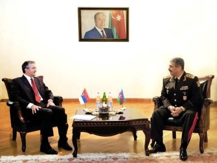 Azerbaijani Defense Minister, Colonel-General Zakir Hasanov met with Nebojša Rodić, Serbian ambassador in Azerbaijan.