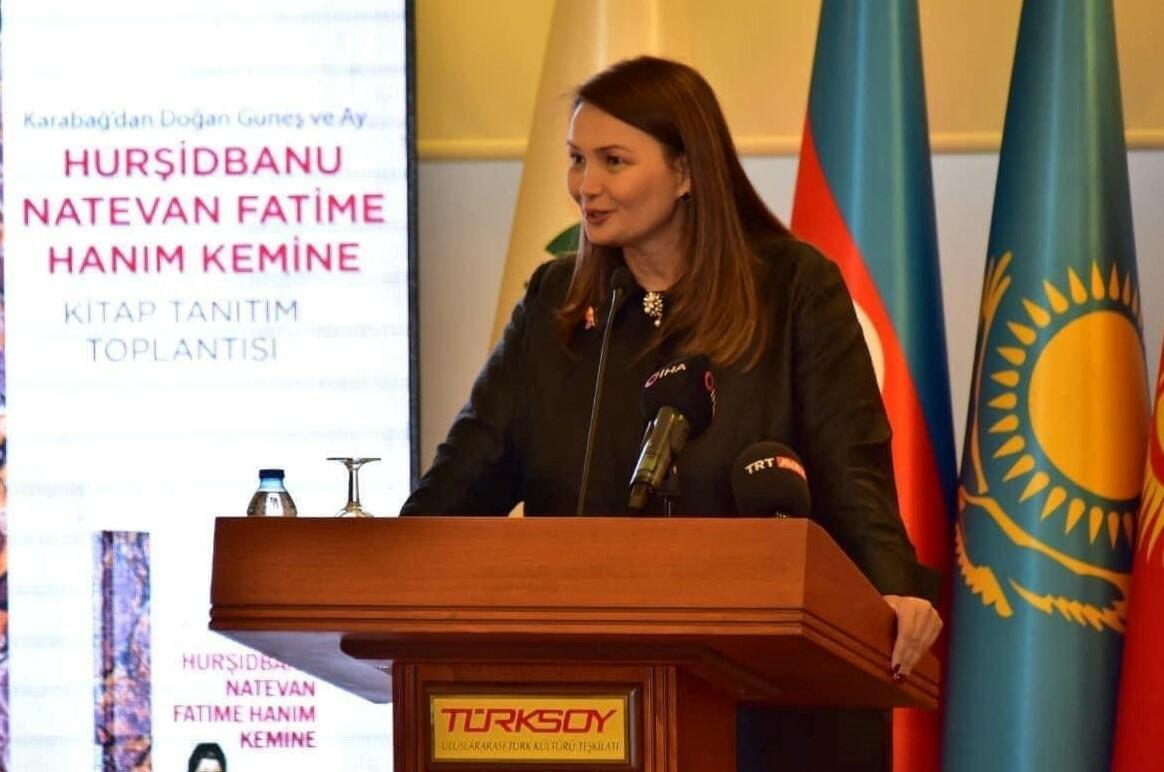 The Chairperson of the Culture Committee of the Milli Majlis, Ganira Pashayeva, spoke at the first presentation of the book "The Sun and the Moon Rising from Karabakh - Khurshidbanu Natavan and Fatima khanum Kamina" held in Ankara, at the Central Headquarters of the International Organization of Turkish Culture - TURKSOY.