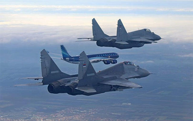 Serbian authorities welcomed President Ilham Aliyev with special respect. So, to accompany the plane of the President of Azerbaijan, Serbia raised its fighters to the sky.