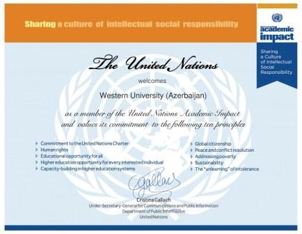 Azerbaijan’s Western University has joined the United Nations Academic Impact (UNAI) program.
