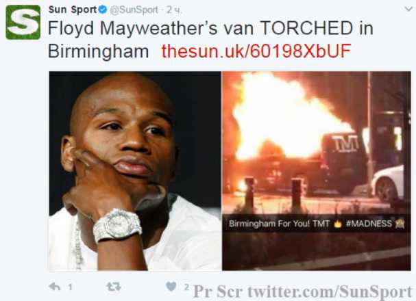 Floyd Mayweather had one of his entourage's vans burnt to a crisp in what appears to be an arson attack this weekend in the UK.