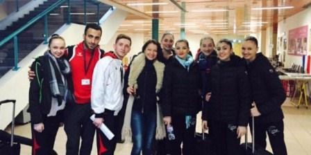 The group team consisting of Siyana Vasileva, Aliaksandra Platonova, Ayshan Bayramova, Diana Doman and Elif Zeynep Celep stopped a step away from the medals in the final exercise with 3 pairs of clubs and 2 hoops.