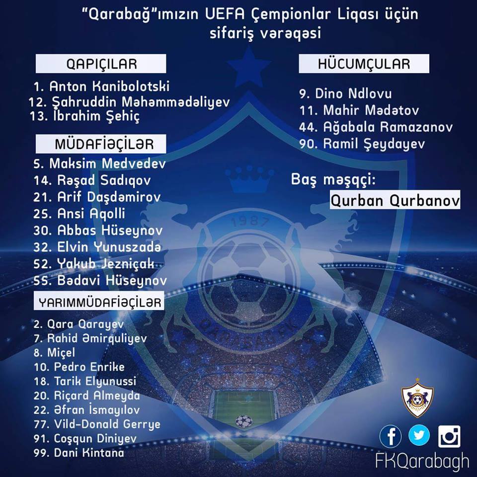 The names of the players who will wear the uniform of "Qarabag" in the group stage of the Champions League have been confirmed.