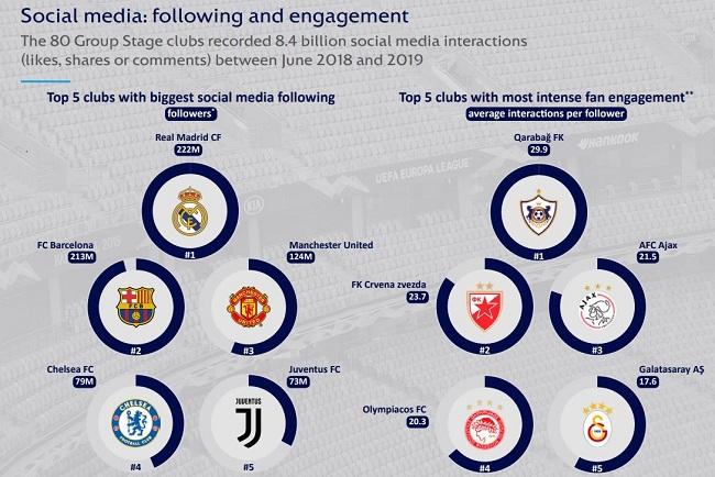 Real Madrid has the highest number of followers on social networks is - 222 million. 80 clubs in the Champions League and the Champions League (AL), have a total of 8.4 billion followers.