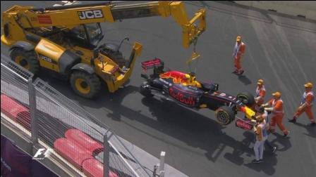 "Red Bull Racing" team driver Daniel Riccardo failed to perform the return operation. As a result of the crash, rear and front right wheel was damaged.