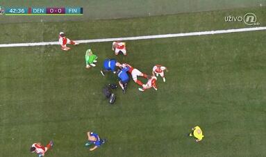 Axar.az reports citing foreign media that the Danish midfielder collapsed on the pitch during the first half of the fixture against Finland, and received quick medical treatment from teammates and medics at the stadium.