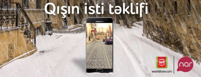 It is noteworthy that in the framework of the campaign, which each Azerbaijani citizen may benefit from, bonuses will be presented during 6 months, being monthly AZN 41.66 on-network calls and 250 MB internet traffic. Voice calls are calculated on "0" tariff and bonuses are active only within this tariff. Information on Samsung A310 smartphone, which is included in the campaign, can be obtained by calling World Telecom Call Centre at (070) 5550555 or visiting w-t.az website.