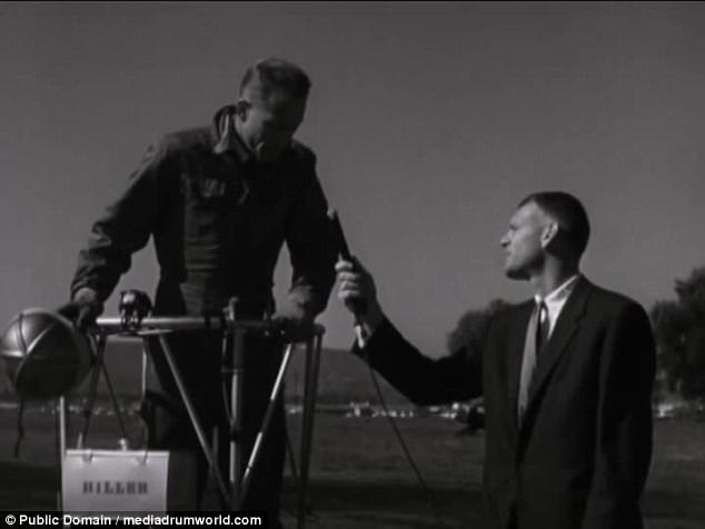 The interviewer described the feat by saying: 'This is quite a machine you have here, I suppose you've come closer than anyone to operating a flying carpet.'