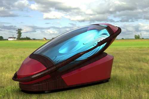 The Sarco's design is meant to echo that of a spaceship, Nitschke told Newsweek. It is intended to give users the feel that they are traveling to the “great beyond.”