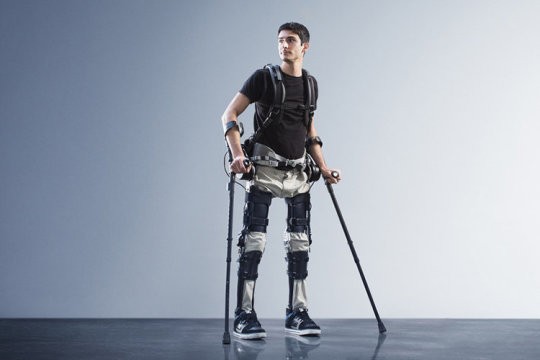The Phoenix is lightweight, has two motors at the hips and electrically controlled tension settings that tighten when the wearer is standing and swing freely when they're walking. Users can control the movement of each leg and walk up to 1.1 miles per hour by pushing buttons integrated into a pair of crutches. It's powered for up to eight hours by a battery pack worn in a backpack.