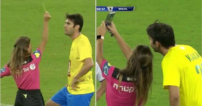 In what was surely a first in football, legendary Brazilian Kaka was shown a yellow card just so the referee could take a selfie with him last night.