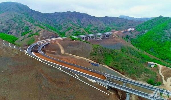 It was reported that in the territory of the Karabakh and Eastern Zangazur economic regions, road infrastructure projects currently underway include 45 vehicle tunnels with a total length of 69.1 km, and over 463 bridges, viaducts, and road overpasses totaling nearly 13.4 km.