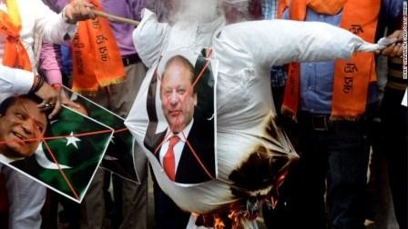 Indian activists burn an effigy of Pakistan's Prime Minister Nawaz Sharif during a protest against Pakistan, in New Delhi September 19, 2016.
