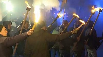 Thousands of activists, notably members and supporters of Ukraine’s far-right Azov regiment and the ultra-radical Right Sector group, have marched through Kyiv, brandishing banners and torches.