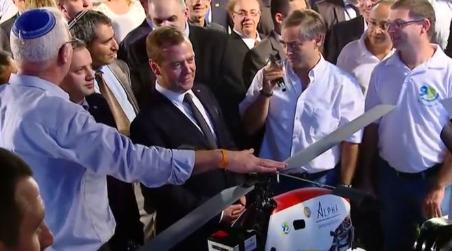 Medvedev with a wide-eyed grin as he piloted the unmanned aerial