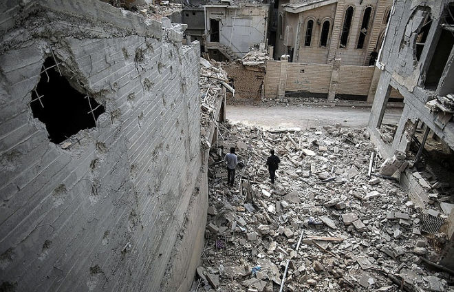 In an unrelated incident, about 200 residents of the Al-Sahur district took to streets in a bid to leave the area, controlled by terrorist groups.