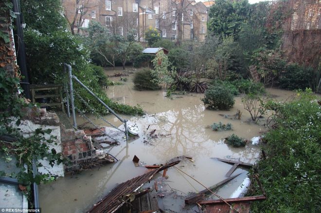 Meanwhile, a torrent of water was seen rushing towards Mr Johnson's four-storey, £2.3million townhouse, but it is unclear if the foreign secretary was home at the time.