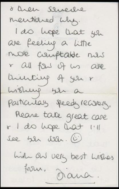 “I often think of you and Mrs Dickman and hope that life is treating you kindly.”