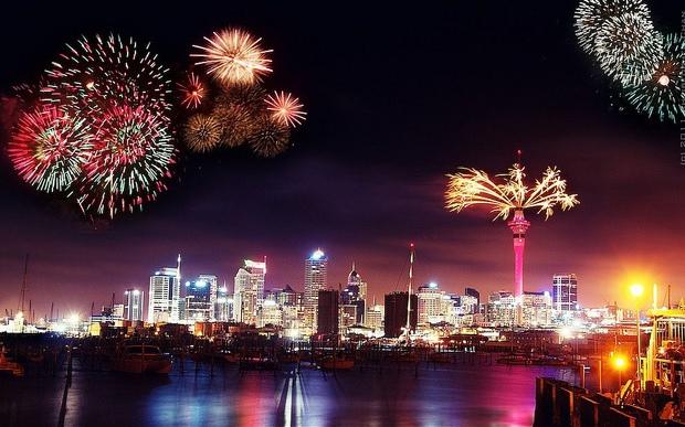 Fireworks erupted from the 328m (1,080ft) tall Sky Tower in the city centre.